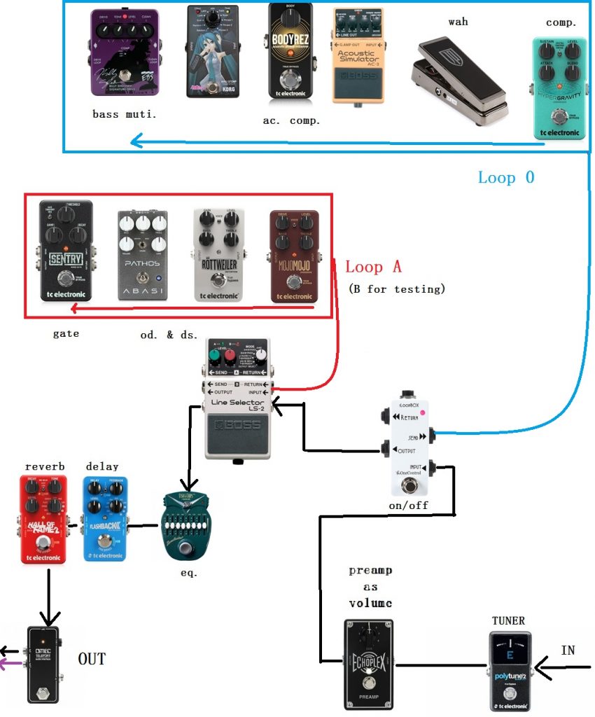 4:两个 切换/Loop 的线之所以画成那样,是因为 One Control 的切换器和 Boss 的出入方向是反着的。反正是拓扑图,凑合看吧。